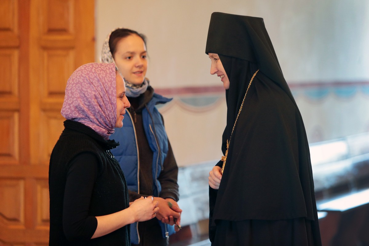 Именно живя в монастыремногие из нас начинают воцерковлятьсядетство-то было далеко от Церквипочти все пришли к вере уже в сознательном возрастеДля того чтобы быть православнымнадо знатьчто такое Православиечто такое Церковь  для этого священники проводят с нами занятия по Катихизисуотвечают на все вопросыБываетчто Матушка благословляет кому-либо из сестер подготовить тему и выступить с «докладом»Такнедавно мы изучали вычисление Пасхалии  «вруцелето».