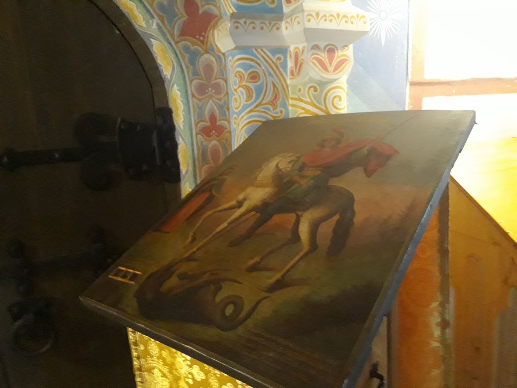 – Здесь написано, – переворачивает икону тыльной стороной: – «Сооружена и преподнесена в дар Одоевскому Анастасову монастырю на молитвенную память трудами и стараниями паломника Свистунова Николая Фомича 10 августа, 1900 года». Когда мы сюда пришли, я дал объявление в местную газету Одоева, спрашивал у многих, сохранились ли у кого святыни, иконочки, может быть, какая-то утварь, которая была в этом монастыре, в этом храме. В объявлении написал, что мы готовы приобрести все это за вознаграждение. Но никто не откликнулся. Ни у кого ничего не осталось, все бесследно исчезло. А в прошлом году произошло вот такое интересное событие. Я приезжаю на вернисаж в Измайлово и подхожу к одной тетушке. Она мне недорого продала икону преподобной Марии Египетской ХIХ века, которая теперь находится у нас в алтаре. Спрашиваю, есть ли что-нибудь интересное? «Есть, – говорит, – Георгий Победоносец. Вот смотри. С мощами». – И вытаскивает из своих запасников икону. Я смотрю, а там надпись – «Анастасов монастырь»! Я чуть в обморок не упал: идет игумен по вернисажу и находит икону своего монастыря. Тетушка, конечно, сумасшедшую цену заломила. Но что поделать?.. Уйдет ведь икона. Потом всю жизнь будешь себя корить, что не предпринял никаких усилий, чтобы вернуть ее в монастырь. И я начал торговаться. А тут еще какой-то человек подошел: «О! с мощами», – говорит. Я стал молиться Георгию Победоносцу: «Святой Великомучениче Георгие, помоги приобрести икону в обитель». Так мы в тот день ни о чем и не договорились с продавщицей. Я взял у нее номер телефона. А потом одному хорошему человеку посетовал, что дела плохо идут… И он меня выручил, дал денег. Икона, кстати, афонского письма…