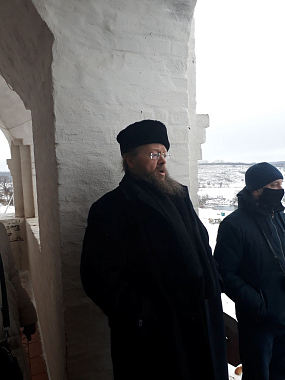 Отец Парфений рассказывает нам, стоя на высоком крыльце перед входом в храм. Тут же он обращает наше внимание на величественный поклонный крест, установленный на месте предполагаемого захоронения Никиты Лупповича Колупаева, который в период Смутного времени не присягнул захватчикам и был сброшен с башни Одоевской крепости. Неизвестный герой… нет его имени в учебниках истории, а в древнем монастыре его поминают и рассказывают о подвиге, о жизни, отданной Отечеству…