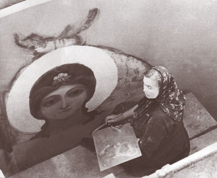 В Днепропетровске мы задержались на три года. Огромный кафедральный собор расписан И.С. Ижакевичем. Росписи красивые, но в то время были очень попорчены. И вот я в 50 лет впервые взобралась на леса. В помощь мне дали Зину, приехавшую вслед за нами из Чернигова, – владыка Гурий заметил ее, когда она работала псаломщицей в холодном храме, пожалел, приласкал... Владыка был прекрасным архиереем и пастырем, любил службу, любил «вытягивать» людей, девчонок бедных привечал.