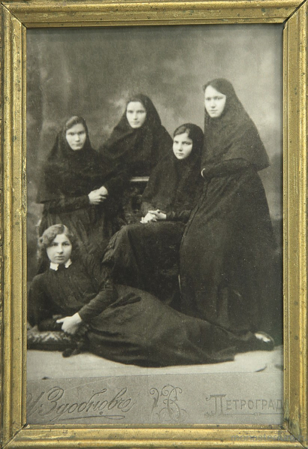 Примерно два года назад в монастырь пришли какие-то женщины. Обратившись к дежурному, они сказали, что у них сохранились вещи их покойной тети – монахини Иоанновского монастыря, и они не знают, что с ними делать. Выложили их вместе с фотографией игумении Ангелины и хотели уйти. Но сестра-свечница остановила их со словами: «Простите, простите, а где вы взяли эту фотографию?» Пришедшие ответили, что много лет назад умерла их старенькая тетя – монахиня Дария (Щербакова), насельница этого монастыря. Свечница попросила женщин оставить свой номер телефона. Сестры с ними созвонились, встретились. У племянниц остались от тети Библия, латунный крест, два маленьких нательных крестика, портрет Батюшки и вырезанные из дореволюционных газет портреты будущих священномучеников митрополита Киевского Владимира (Богоявленского) и епископа Тобольского и Сибирского Гермогена (Долганова). Третья пожелтевшая газетная вырезка – с портретом святителя Макария (Невского), митрополита Московского и Коломенского. Сохранила монахиня Дария и фотографию матушки Ангелины во весь рост – ту самую, о которой речь шла выше (в большой приемной зале с аркой и лепниной). Это было то, что монахине Дарье удалось забрать из монастыря при его закрытии в 1923 году. Насельницам не давали уносить ни иконы, ни вещи: сколько возьмешь в узелочек, с тем и уходи. Но самое поразительное, что она смогла это сохранить в ссылке! Поражает еще один важный момент: монахиня Дария, которая была гонима властью, потеряла свое здоровье в ссылке, по возвращении домой, не помня зла, защищала свою Родину, свой народ от врагов. Об этом свидетельствуют многочисленные государственные награды СССР: медали «За оборону Ленинграда», «За доблестный труд в Великой Отечественной войне» и в «Память 250-летия Ленинграда». Она пережила блокаду и умерла в 70-х годах прошлого века, показав окружающим пример величайшего христианского прощения и любви.