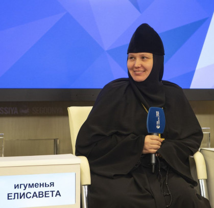 Одна из журналисток поинтересовалась духовной стороной монастырской жизни: сколько монахинь живет в обители, как они попадают в монастырь, участвуют ли в социальном служении. И отдельным вопросом прозвучало: «Матушка, а случались у вас в обители чудеса?» Отвечая на эти вопросы, игумения Елисавета пояснила, что на сегодняшний день в Марфо-Мариинском женском монастыре проживает 56 сестер, из них порядка 30 – постриженных. Часть сестер приходят в обитель, потому что узнают о подвиге Елисаветы Феодоровны и хотят поучаствовать в работе монастыря, другие приходят по иным причинам: кто-то посоветовал, духовник благословил... Но попасть в обитель, по словам настоятельницы, весьма непросто – все сестры проходят очень серьезный отбор. Игумения рассказала, что сестры живут по общежительному уставу, день монахинь начинается в половине седьмого (если нет отдельного послушания), дальше – сестринское правило, Литургия, трапеза, послушания, вечером – совместная молитва, день заканчивается в 23.00. Монахини не участвуют в социальных проектах, их послушания связаны с богослужебной жизнью обители, кроме того, они выполняют разные административные функции и помогают в трапезной.