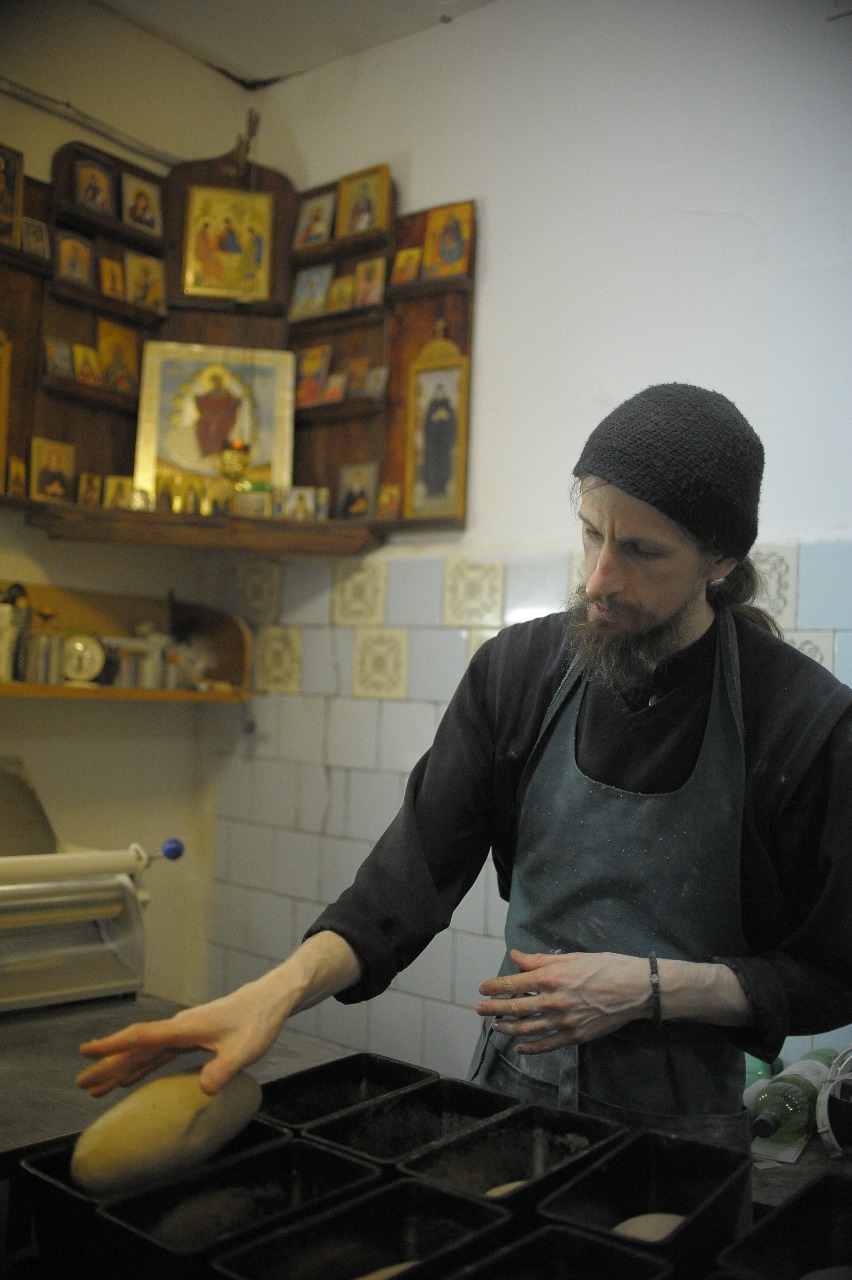 Грань между трудом и молитвой в монастыре весьма условна. Труд монахов, каждого на своем месте по отдельности, сменяет совместная молитва за богослужением. Индивидуальному труду же сопутствует молитва личная. Молитва – первая обязанность монаха, а труд по послушанию – важнейшая монашеская добродетель. Хвалите имя Господне, хвалите, раби Господа, стоящии во храме Господни, во дворех дому Бога нашего… Пока читают кафизмы, иеродиакон Александр успевает замесить тесто для хлеба, который назавтра к обеду будет стоять на столах в монастырской трапезной, и вернуться обратно в храм, к братии.
