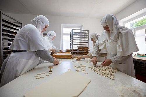 К сожалению, сегодня в нашем монастыре нет подобных условий для засолки. Но зато мы производим другую вкусную продукцию: изготавливаем сыр разных сортов, выпекаем хлеб, пирожки, кексы и другие хлебобулочные изделия.