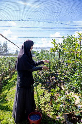 Головной убор монаха – это шлем спасения, покрывало послушания и смирения. Когда наши сестры идут на богослужение, они надевают камилавку, а в повседневной жизни – вязаную шапочку, которая закрывает лоб. Это традиция нашей обители.