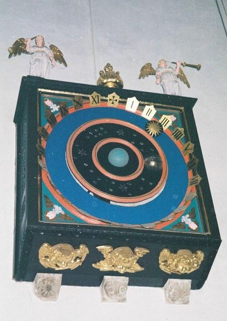 г. Знаменитые астрономические часы XIV века, на которых Земля изображена в центре Солнечной системы. Созданные монахом Питером Лайтфутом из Гластонбери, они расположены на стене в баптистерии храма и в 1979-м году были отреставрированы. Подобные часы также можно найти в кафедральных соборах Эксетера, Солсбери и Уэллса.