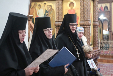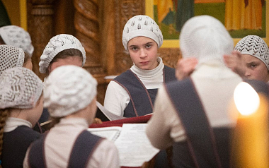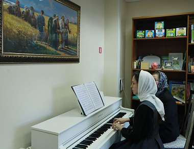 «В монастыре девочки проживают, здесь же они учатся. Учатся они бесплатно, на полном обеспечении монастыря. Питание обеспечиваем, форму шьем, и учебную, и концертную тоже, – рассказывает мать Паисия. – Практика хорового дирижирования проходит в храме. Есть череда, воспитанницы ходят на службы по очереди, а в воскресные, праздничные дни поют вместе с сестрами на два хора».
