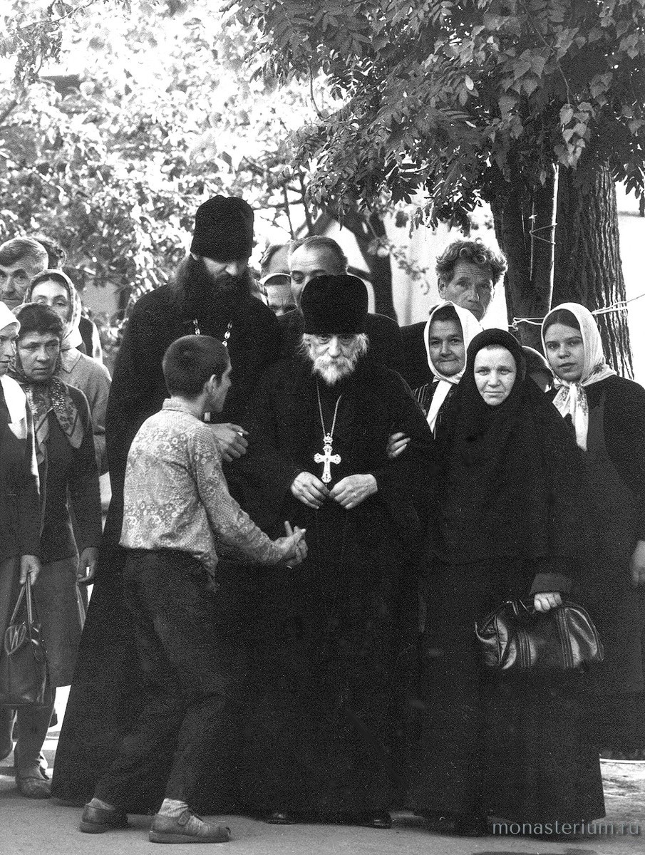 Пример отца Серафима в полной мере подтверждает сказанное. Во время тяжелейших лагерных испытаний батюшка продолжал свое пастырское служение – часто исповедовал, крестил, отпевал умерших заключенных. Поэтому и написал он в прошении епископу Курскому и Белгородскому Леониду (спустя годы, ставшему митрополитом Рижским и Латвийским) о том, что скоро исполняется 40-летие его священнического служения. Далее следуют слова: «Иночество стало для меня заветной мечтой, как в годы юности – пастырство. Новые жизненные испытания все более укрепляли меня в осуществлении желания – иночества. И ныне не только желаю, но жажду хотя бы во единодесятый час выйти на делание в иноческом винограднике Церкви Христовой и подражать подвигам тех, кто имеет милость Божию трудиться в винограднике от первого часа (Мф. 20: 1–16). Вместе со святым псалмопевцем Давидом взываю: “Готово сердце мое, Боже, готово сердце мое” (Пс. 56: 8)». Отец Димитрий, уже служивший в Ракитном, смиреннейше просил Владыку (если не будет нарушения послушания с его стороны, писал он) при постриге дать ему святое имя преподобного Серафима Саровского, которого с детства почитает своим покровителем. А с епископом Леонидом (Поляковым) будущий старец встретился в приемной Святейшего Патриарха Московского и всея Руси Алексия I. Больной, голодный изгнанник пришел к Его Святейшеству просить место: в Днепропетровске уполномоченный по делам религии приказал ему в два дня покинуть город, запретив служить в Днепропетровской епархии. И какой величайшей радостью обернулась, казалось бы, случайная встреча с архиереем, взявшим его к себе в епархию, прочно связанную с именем батюшки Серафима Саровского! И монашеский постриг батюшки был совершен в храме, построенном родителями Преподобного. Хочу повторить вслед за отцом Николаем: «Господь смотрит и в свое время это нам дает».