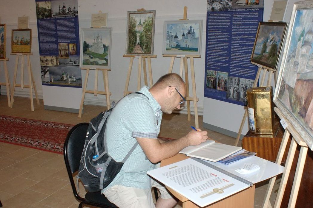 Если хотя бы примерно распределить отзывы по городам, в которых работала выставка, то сразу становится явным, что их явный количественный прирост приходится на время августовского экспонирования выставки в «домашнем режиме», на территории своей обители, в Спасском храме Спасо-Яковлевского монастыря. Несомненно, определяющую роль в этом сыграл удачный выбор места для экспозиции – ее разместили на галерее Спасо-Преображенского собора. Этот необычайно красивый древнерусский храм практически всегда закрыт, но на время работы выставки он оказался доступен для свободного посещения всем желающим.