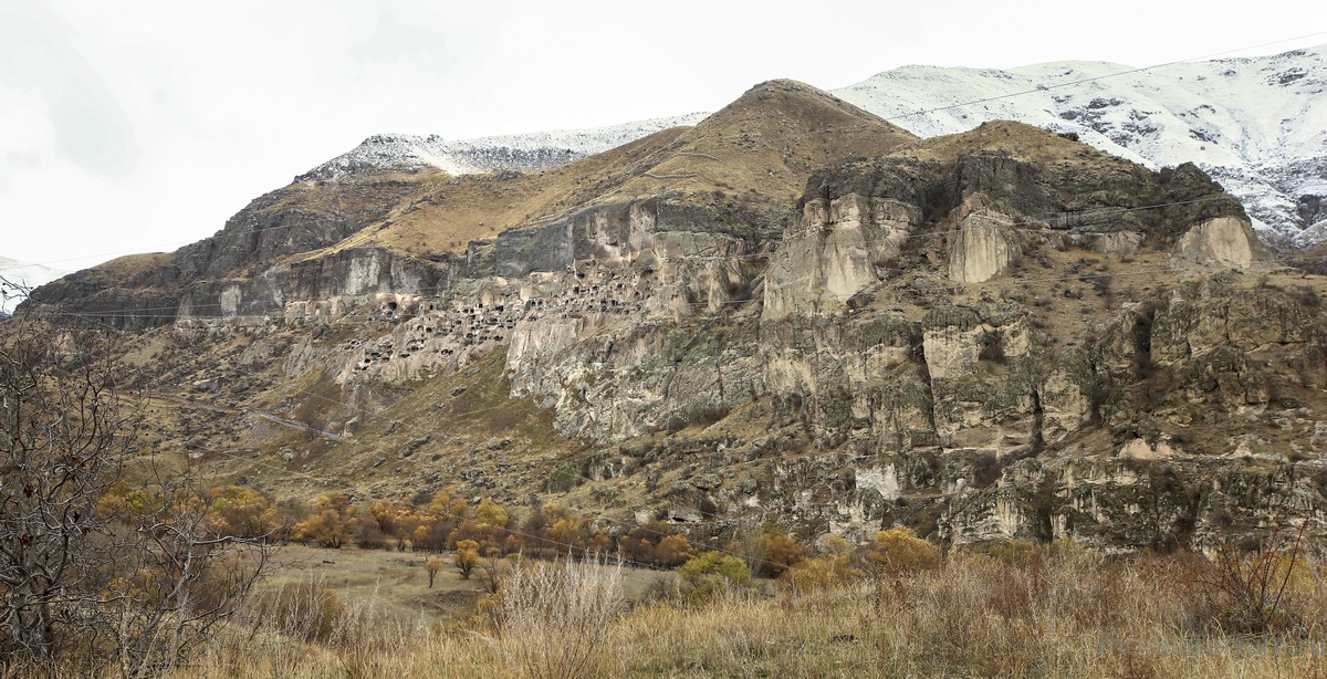 История монастыря берет свое начало в XII веке, когда грузинский царь Георгий III понял, что для защиты Грузии ему необходимо иметь на границе с Персией и Турцией хорошо укрепленную крепость. Он долго искал подходящее место, и Господь привел его к горе Эрушети (Медвежья гора). Ее отвесная стена, обращенная к долине реки Куры, была сделана из туфа (легкая и пористая горная порода – Ред.) и идеально подходила для создания подземного города. По приказу царя в Эрушети начали вырубать пещеры. Причем делали это поистине с царским размахом! Вдоль берега реки в сердце горы прорубили свыше 600 помещений, связав их между собой запутанными ходами и галереями. Из подземного города-крепости на поверхность вели лишь три скрытые от глаз входа. При необходимости долгую осаду под горой могли бы выдержать порядка 20 тысяч человек! Здесь всё было приготовлено для нормальной жизни: помещения для сна и отдыха, хранилища еды и резервуары с водой, трапезные, бани, библиотеки…