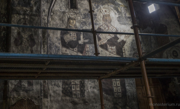 Сам храм представляет собой большой зал с закруглением в восточной части. Под алтарем есть потайной ход, ведущий в помещение, где хранились церковная утварь и одеяния священнослужителей. Особую ценность храма Успения Пресвятой Богородицы составляют его уникальные фрески. В алтаре можно увидеть изображение Богородицы с архангелами, а ниже – изображения 12 первосвященников со свитками в руках. На своде подземного храма, несмотря на прошедшие 9 веков, сохранились фрески с различными евангельскими сюжетами: Благовещение, Рождество, Сретение, Крещение, Преображение, воскресение Лазаря, Вознесение, сошествие Святого Духа и Успение Пресвятой Богородицы. На одной из стен храма можно увидеть и фреску, изображающую царя Георгия III и царицу Тамару.