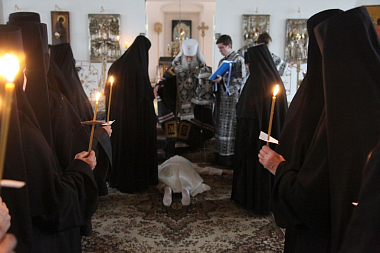 В нашей обители подвизаются 24 сестры. Жизнь иноческая – иная, в отличие от мирской. Она собирает, создает нового человека, воссоздает образ Божий. День начинается, продолжается и кончается молитвой, которая в ночи уже освещает новый день.