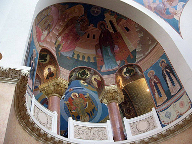 «...И когда были демонтированы последние балки, закрывавшие общий вид убранства собора, всем нам вдруг открылась такая жемчужина, что мы ахнули от изумления. Мне сразу же пришли на память слова Любушки: “А какая откроется жемчужина!”». Блаженная Любушка Сусанинская – духовное чадо покровительствующего обители преподобного Серафима Вырицкого.