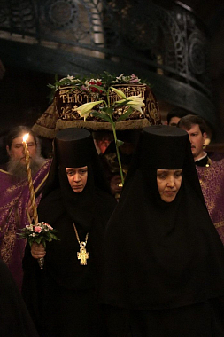Документы на весь монастырский комплекс действительно передали на следующий год в Неделю по Воздвижении, когда на аналое в храме лежал Крест и пели величание: «Кресту Твоему покланяемся, Владыко, и святое Воскресение Твое поем и славим...»