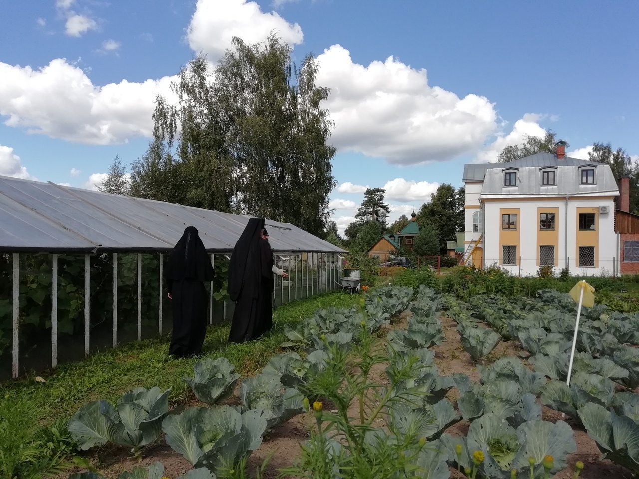 – Это, конечно же, не Спасо-Яковлевский монастырь (более шести лет он был наместником обители в Ростове Великом, и там было создано прекрасное хозяйство, большие теплицы). – Но все же в этом году нам, наконец, удалось небольшое чудо – благодаря нашим помощникам устроили огородик и теплицы. Показывая созданное, отец Серафим ныряет в теплицу и приносит оттуда вкусно пахнущие красные помидоры. Рядом, как какая-то другая реальность, растут арбузы – в это благодатное лето на подворье созрели даже они. И, конечно, традиционные морковь, свекла, кабачки, капуста… Огород небольшой, но сделан по современным технологиям. На подворье еще держат восемь коров. Для них специально сажают кормовую свеклу.