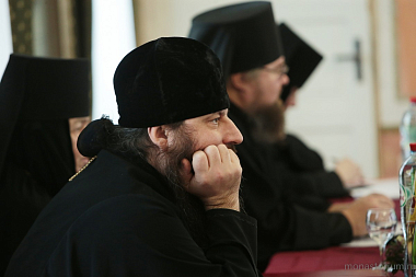 Роли духовных руководителей и их первых помощников в организации монашеской жизни в монастыре уделялось большое внимание и в других докладах. Так гость из соседней епархии – игумен Николай (Шишкин), магистр богословия проректор по научной работе Ярославской духовной семинарии, благочинный Угличского района Переславской епархии – в своем докладе «Древние иноческие уставы в современной жизни Церкви» привел цитату, где ни одно слово, ни одно определение не утратило веса в наши дни: «Он должен быть смиренномудр, истиннолюбив и правдолюбив, милосерд и сострадателен, простосердечен и чужд всякого лукавства, строг к себе и во всем воздержен, постоянен и тверд, как в суждениях своих, так и в делах, терпелив и мужествен, и скорее готов подъять смерть, нежели отступить от осознанной правды Божией...» Эти бессмертные слова-наставления взяты из устава Тавеннисиотских монастырей, устроенных преподобным Пахомием и преподобным Феодором в IV веке. Благодаря великому ученому-богослову святителю Феофану (Затворнику), совершившему свой грандиозный труд по собиранию древних иноческих уставов в XIX веке, они стали известны и современным представителям монашества. Что касается самих древних иноческих уставов, переведенных, откомментированных и объединенных в одну книгу Святителем «Древние иноческие уставы», то в предисловии к этому изданию говорится: они дают возможность удостовериться, во-первых, в том, что иночество – не новость какая недавняя и произвольная, а также древне, как само христианство, и требуется самым духом христианства, которое чает видеть себя явленным в нем в совершеннейшем виде. Во-вторых: наш образ иночествования согласен с первоначальным и с тем, в каком оно было держимо в Церкви во все время – от начала до нас.