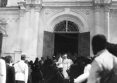 Высочайшие Гости встречены были при входе в собор Преосвященным Назарием, епископом Нижегородским, с сонмом священнослужителей, со святым крестом и святой водой. Владыка приветствовал Государя Императора и Государынь Императриц речью. После провозглашения ектении и многолетия Высочайшие Гости молились пред иконой Божией Матери «Умиление» и пред местночтимой иконой «Нерукотворенный Образ Спасителя» и прикладывались к ним.