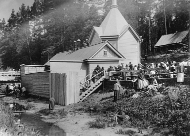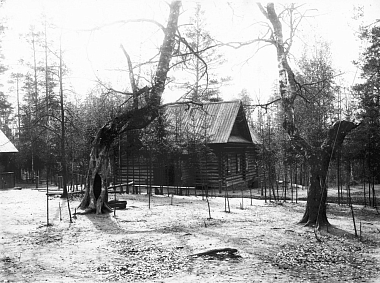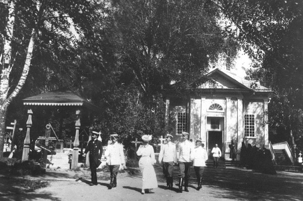 С грустью покинули Саровскую пустынь и отправились в городок, где построены бараки для богомольцев. В часовне епископ Иннокентий отслужил короткий молебен, и мы поехали дальше лесом. Погода была жаркая, и дул сильнейший попутный ветер, гнавший пыль с нами. В 10 с 1/2 приехали в Дивеевский Женский монастырь. В домовой церкви настоятельницы матери Марии отслушали обедню, затем все сели завтракать, а Аликс и Я отправились к Прасковье Ивановне (блаженной). Любопытное было свидание с нею. Затем мы оба поели, а мама с другими посетили ее. Осмотрели церковь Преображения, где сохраняются вещи святого Серафима, его келию, типографию и живописную школу сестер.