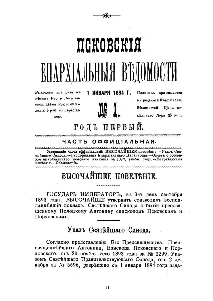 Первые две книги – «Храмы и монастыри города Пскова» и «Храмы Псковского уезда, Псковской губернии» – были изданы в 2009 году. К концу того же года нам удалось подготовить к изданию «Хронику Псковской епархии за 1894–1917 годы (по страницам «Псковских епархиальных ведомостей»). Мы создали своеобразную поисковую систему информации по разным тематическим группам. В рукописном варианте она была успешно опробована при написании «Псковского синодика». Тогда же отец Ермоген предложил включить в издание и списки священнослужителей.
