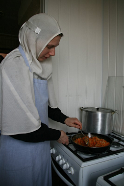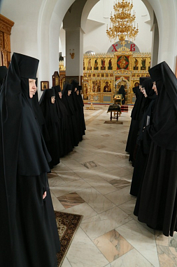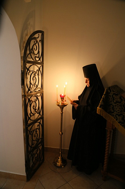 День в обители начинается в пять часов утра. В 5-30 – утреннее правило, в 8-00 – часы и Божественная Литургия. После утренней службы – трапеза, затем – время послушаний. Перед второй трапезой, которая начинается в 16-00, есть час отдыха. В 17-00 – вечернее богослужение, за которым следует вечернее монашеское правило с чином прощения.