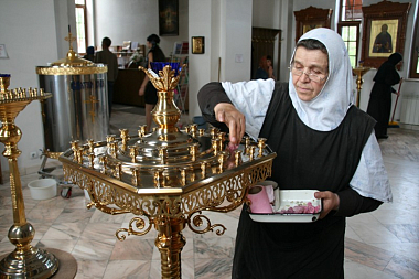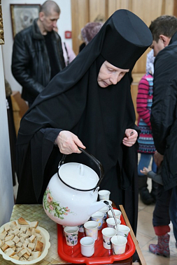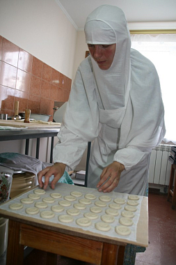 Общаться со светскими людьми сестрам приходится не часто, однако есть послушания, когда сестры на достаточно долгое время покидают обитель, трудясь, например, на Православных ярмарках.
