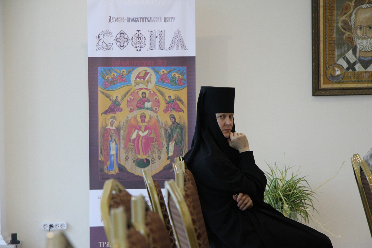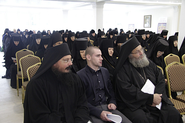 Еще две игумении из дочерних обителей – настоятельница Спасо-Воротынского монастыря матушка Анастасия (Мордмиллович) и настоятельница Успенского Феклиного монастыря с. Сенино матушка Виталия (Кочетова) – выступили на монашеской конференции с докладами: «Монашеские обеты как основа для формирования духовно-здоровой личности» и «Молитва как центр жизни монастыря». В них были затронуты вопросы необратимости монашеских обетов; ответственности игумена или игумении за понимание каждым братом или сестрой наиважнейшего правила монастырской жизни: посещение храма – это не формальная обязанность физического присутствия в храме, а таинственное собеседование с Богом. Цитируя преподобного Симеона Нового Богослова («Кто ропщет за обыкновенными службами, тяготится ими.., тот враг Божий и чужд Царствия Небесного»), игумения Виталия заметила, что первый признак порчи продукта определяется по гниению, изменению цвета и вкуса, появлению дурного запаха. А душа бестелесна, она не может издавать запах и менять вид. Но есть верный признак омертвения души – уклонение от церковных служб. И это представляет особую опасность для монашествующих, поскольку монастырь без молитвы – уже не монастырь, а что-то, по словам Матушки, напоминающее советский колхоз. Богослужебный круг она образно назвала золотым кольцом, которым монахи обручаются с вечностью.