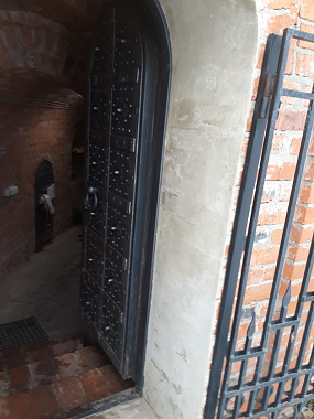 Матушка Анастасия показывает нам старую кирпичную кладку. Там, где это было возможно, реставраторы постарались сохранить ее. Кладка значительно отличается от современной.