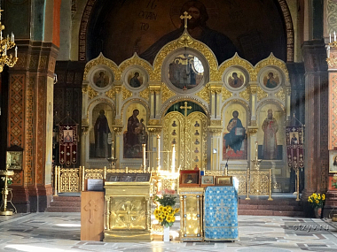 … По благословению настоятеля монастыря игумена Николая (Парамонова) знакомил нас с обителью и ее историей иеромонах Филарет (Коноплев). В храме преподобного Сергия отец Филарет подошел сначала к большой иконе святителя Игнатия (Брянчанинова), затем сделал несколько шагов дальше вдоль стены – к деревянной раке. Сказал, что здесь покоятся честные останки архимандрита Игнатия (Малышева). На многие годы его захоронение было утеряно, а в 1998 году братия возрождающейся обители нашла его во время раскопок. По благословению священноначалия останки Игнатия Маленького были поставлены здесь – в величественном соборе, являющем собой первую в России базилику. Как написано в предисловии к вышеназванной книге, содержащей жизнеописание архимандрита Игнатия: «Верный раб Божий, смирением своим, конечно же, стяжавший право именоваться сыном, вернулся в храм, чтобы даже после земной кончины нести особое послушание – быть молчаливым наставником, ко гробу которого возлюбили приходить иноки и теперь уже многочисленные богомольцы, испрашивая помощи и благословения в нуждах своих».