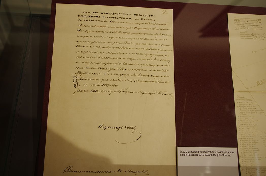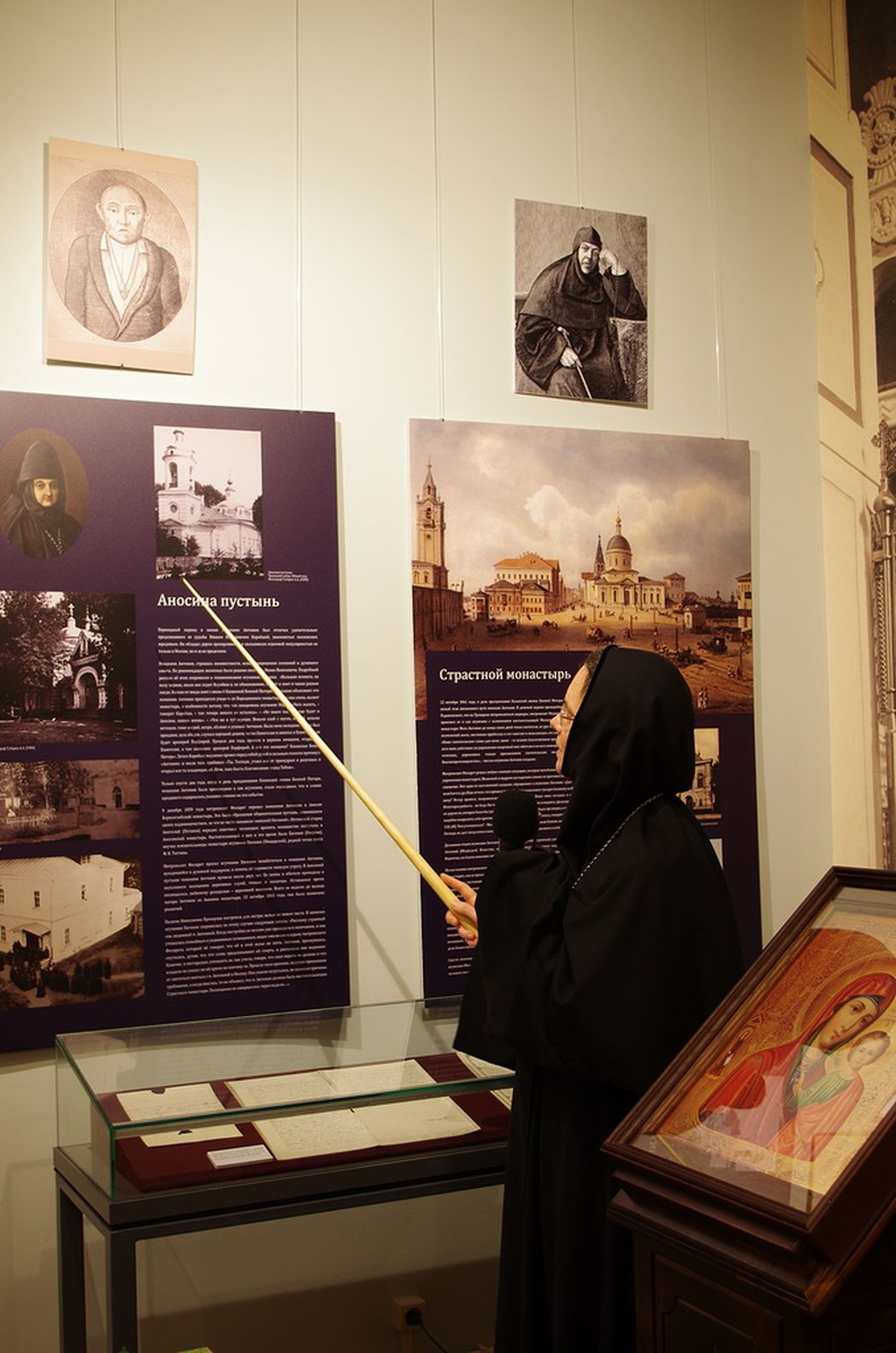 Потом, когда Балканский вопрос был урегулирован, при обители открыли школу-приют для 17 девочек (в память избавления Их Императорских Величеств от угрожавшей опасности 17 октября 1888 года, когда царская семья чудом уцелела в катастрофе царского поезда под Харьковом). В монастырскую школу-приют принимали, «как сирот, так и дочерей беднейших членов духовенства Московской епархии». Некоторых из воспитанниц – человек пять-шесть одновременно – на попечение матушки Антонии присылало Елизаветинское благотворительное общество, состоящее под покровительством Ее Императорского Высочества Великой Княгини Елизаветы Федоровны. Матушка Антония была знакома практически со всем цветом тогдашней столицы, так что в открывшейся экспозиции можно встретить множество портретов выдающихся представителей как церковной иерархии, так и благочестивой части светского общества тех времен.