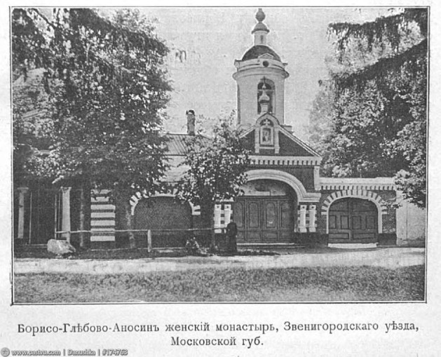 Митрополит Филарет отказался выпускать постриженицу из своей епархии, отметив, что «такие люди ему нужны», и предложил ей перейти в Аносин Борисоглебский монастырь, – сюда, кстати, в те времена часто советовал поступать желавшим монашества и оптинский старец Анатолий (Потапов). Переход из дорогого для нее места, где упокоена духовная мать, в новое, неизвестное, несколько страшил сестру Антонию. Чтобы поддержать ее дух, кто-то из близкого окружения посоветовал ей сходить побеседовать к известному в то время юродивому – Ивану Яковлевичу Корейше. Тот предсказал дальнейшие события в жизни сестры Антонии, правда, сделал это в своей манере так иносказательно, что поначалу никто ничего не понял… Перевод монахини Антонии в Аносин Борисоглебский монастырь состоялся 9 декабря 1859 года. По ходатайству митрополита Филарета настоятельница, игумения Евгения (Озерова) – внучка основательницы обители игумении Евгении (Мещерской), родной тетки Ф.И. Тютчева – приняла новоприбывшую весьма ласково и внимательно заботилась о ней. Монахиня Антония прожила около двух лет вместе с переехавшей с ней из Бородина сестрой Таисией, не принимая близкого участия в общей жизни монастыря. 15 октября 1861 года ее только было назначили ризничей, но вскоре пришло известие о кончине настоятельницы московского Страстного монастыря игумении Паисии…