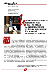 История монастырского устроения Руси в XIV– XV веках на страницах книг из фонда библиотеки Московской духовной академии