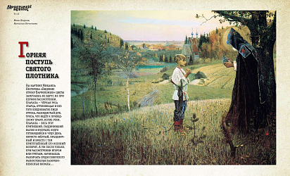 На картине Михаила Нестерова «Видение отроку Варфоломею» цветы замечаешь не вдруг, не при первом рассмотрении. Сначала – чёрная ряса старца, оттеняющая и без того бледноватое лицо отрока, раскидистый дуб, тропа, что ведёт к приходскому храму, изгиб реки. Сначала – весь этот притихший, съединивший былое и будущее, будто готовящийся к чуду день, охристо-жёлтый, праздничный и вместе с тем приглушённый его осенний колорит. А уж после только, при рассмотрении втором или третьем, начинаешь различать среди пожухлого разностебелья лазоревонебесные вкрапы…