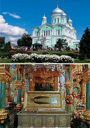 - дивеевский ковчег с частицей мощей преподобного, часть камня, на котором он молился, и небольшой лоскут одежды старца.