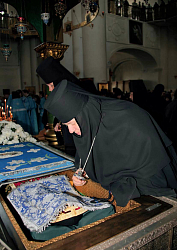 - ковчег с частицей мощей, икона с частью камня, на котором преподобный молился 1000 дней и ночей (на фото слева).