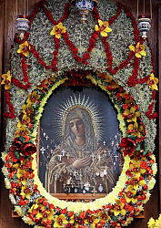 Образ Богоматери «Умиление», или «Всех радостей Радость», как называл его преподобный Серафим, был его келейной иконой. Елеем от лампады, горевшей перед святым образом, батюшка помазывал больных, перед этой иконой он молился и в молитве перед нею отошел ко Господу