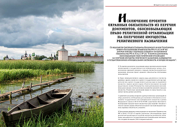 Исключение проектов охранных обязательств из перечня документов, обосновывающих право религиозной организации на получение имущества религиозного назначения