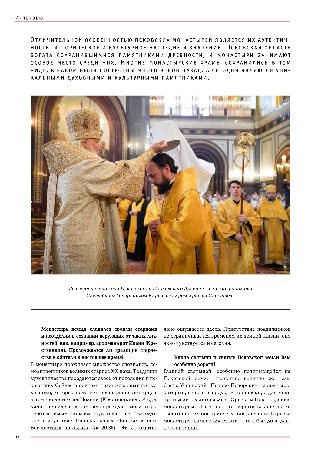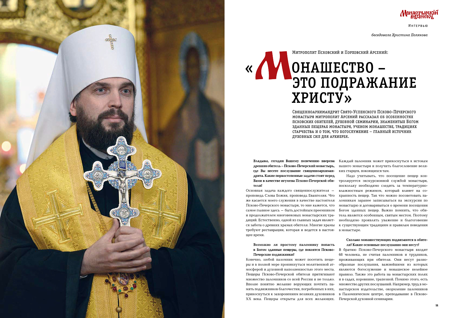 Священноархимандрит Свято-Успенского Псково-Печерского монастыря митрополит Арсений рассказал об особенностях псковских обителей, духовной семинарии, знаменитых Богом зданных пещерах монастыря, ученом монашестве, традициях старчества и о том, что богослужение – главный источник духовных сил для архиерея.