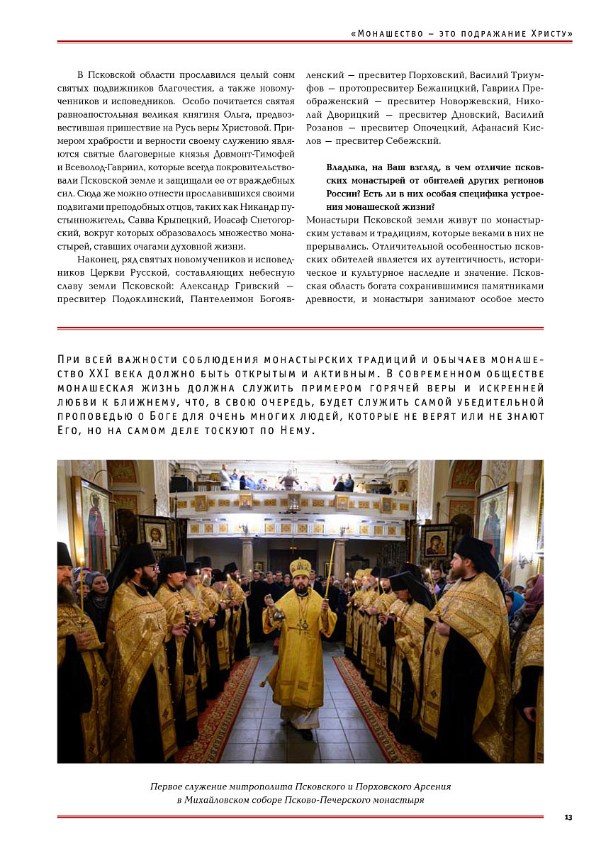 Тема номера: Обители земли Псковской